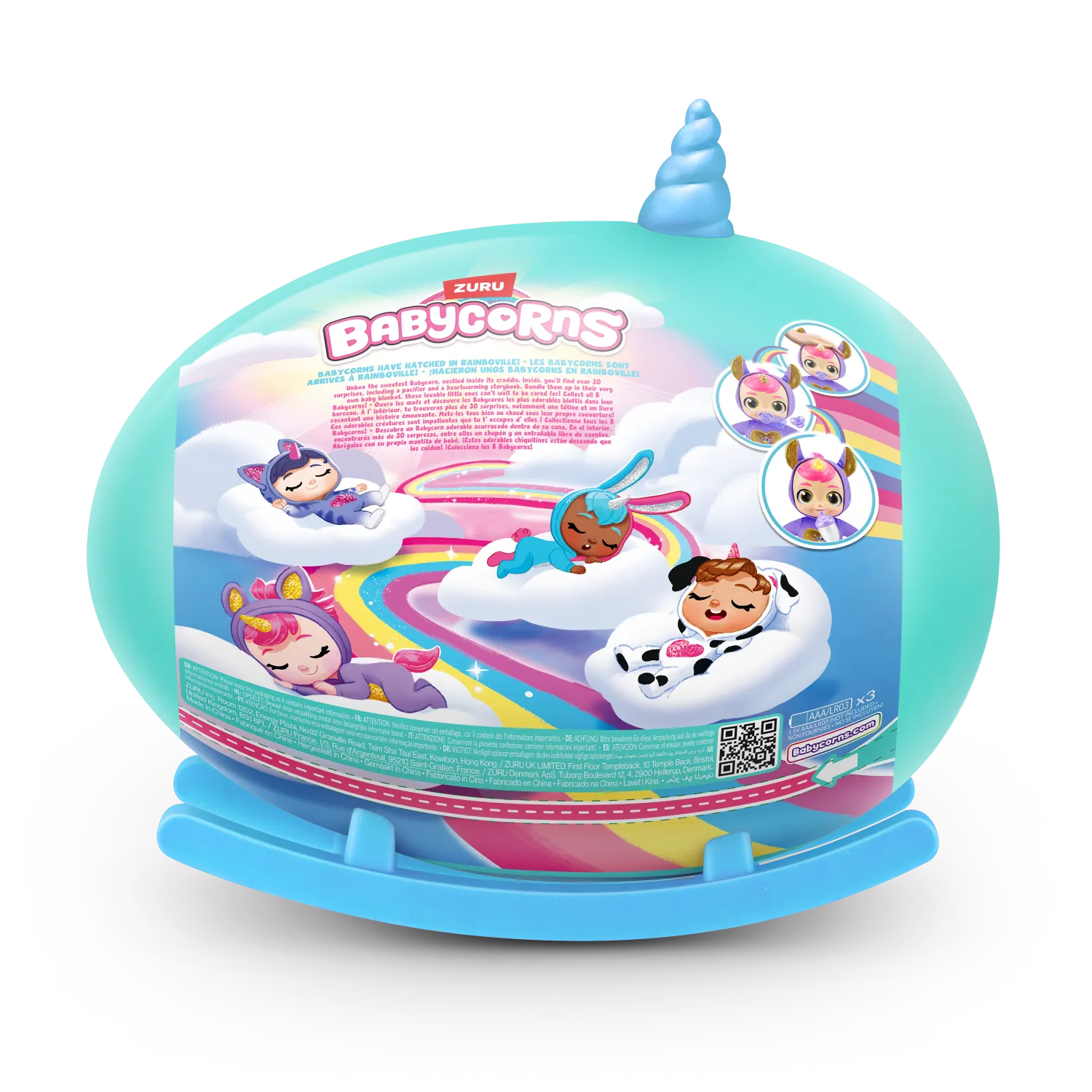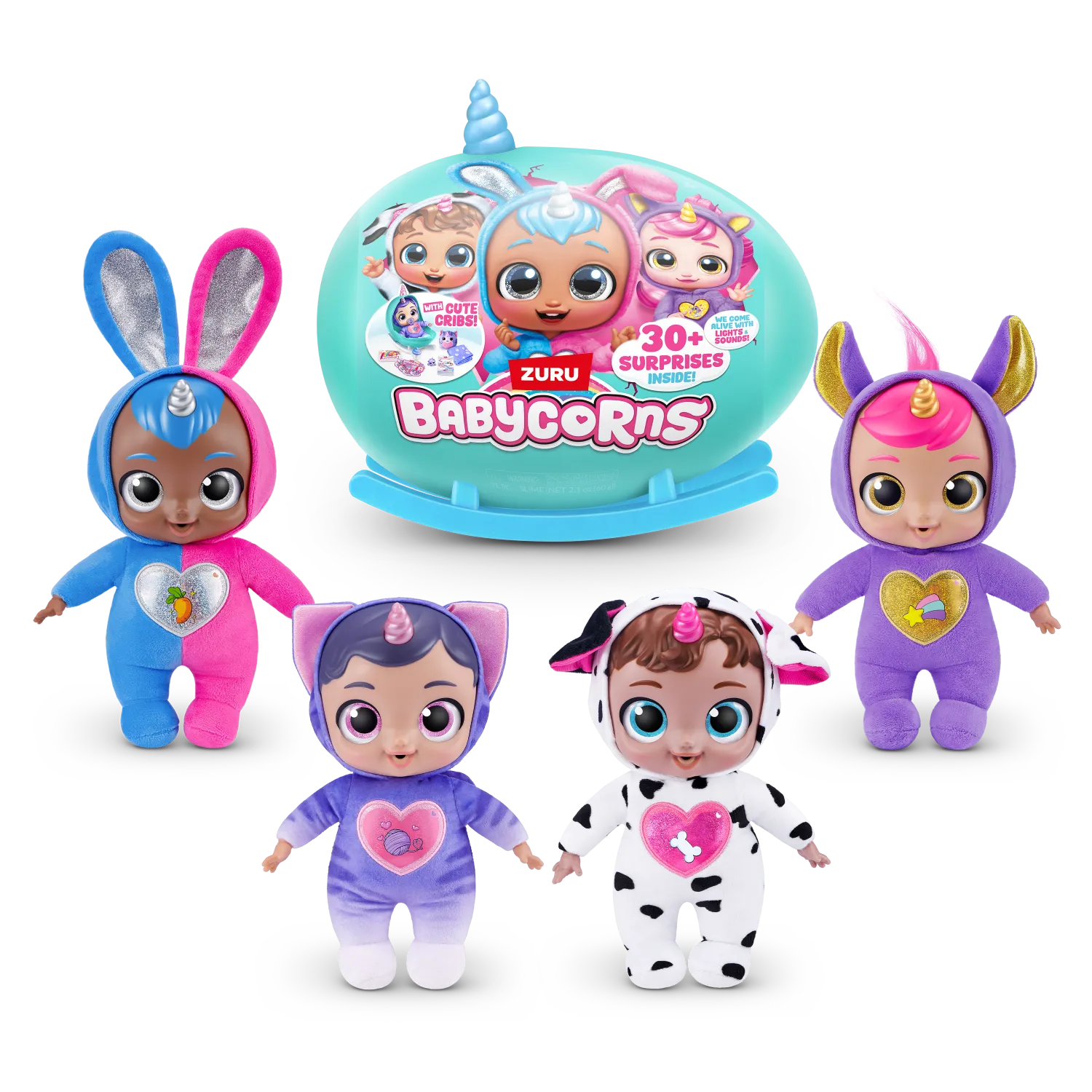 ¡Han llegado los Babycorns y están deseando jugar! Descubre a los bebés Rainbocorn más dulces y mágicos, metiditos en sus cunas mágicas. Encontrarás más de 30 sorpresas en su interior. Tu Babycorn cobra vida con luces y sonidos mágicos. ¡Estos adorables pequeños están deseando que los cuiden!