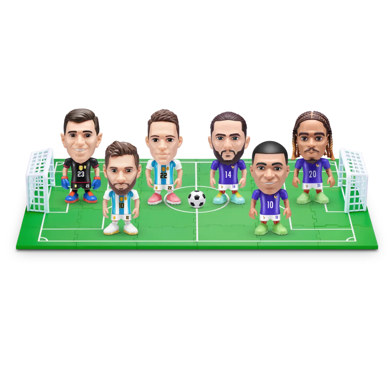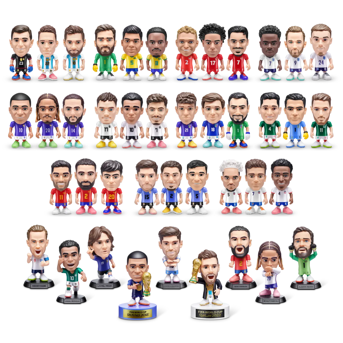 Cada figura de jugador FIFA WORLD CUP incluye una mini pelota, una moneda de colección y 1 sorpresa adicional.