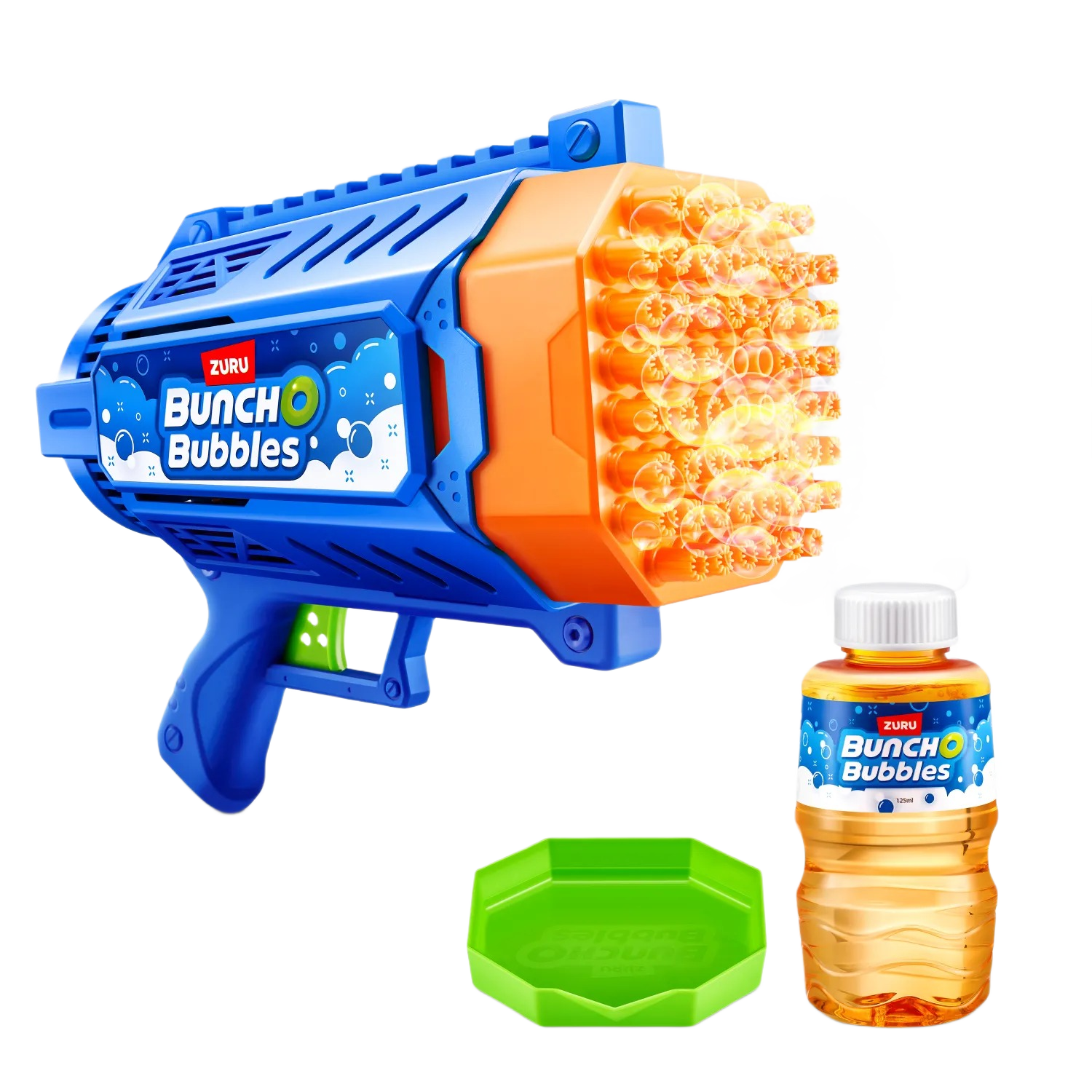 ¡Crea millones de burbujas con el lanzador de burbujas Bunch O Bubbles Bubble Blaster con motor! Este juguete viene con 125 ml de solución de burbujas. Solo tienes que poner la solución en la bandeja y sumergir el lanzador de burbujas Bubble Blaster para comenzar la fiesta fiesta. Ofrece horas de entretenimiento, sin necesidad de soplar.
