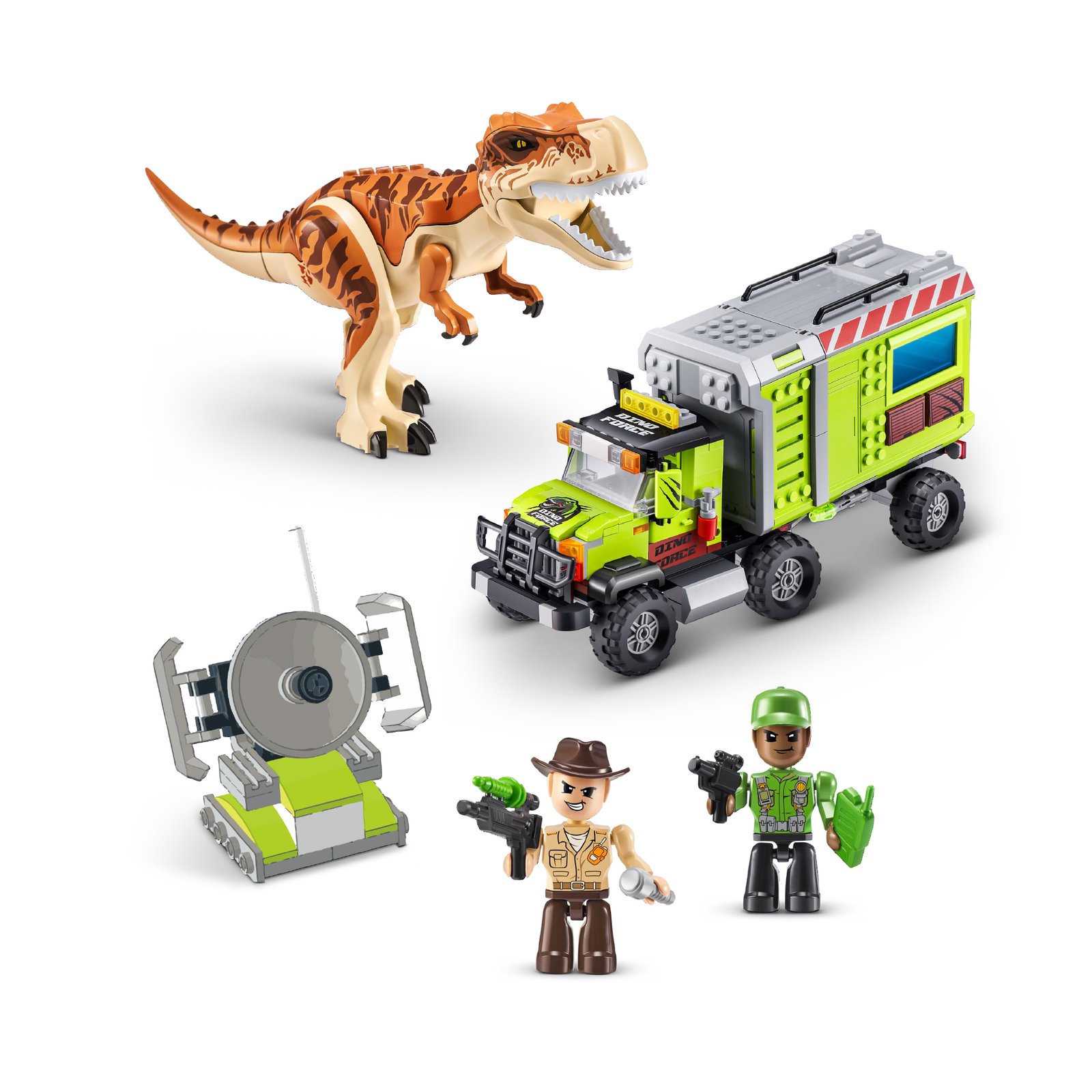 ¡Crea una dinoaventura con MAX Build More! Construye tu mundo prehistórico construyendo el dinosaurio, el radar y el enorme camión siguiendo las sencillas instrucciones. Utiliza la señal de radar para detectar tu dinosaurio. ¡Coloca la figura en el camión y corre para cazar al épico dinosaurio! Mueve los brazos del dinosaurio para escapar de la persecución y abre la puerta trasera del camión para atrapar al dinosaurio. Los bloques MAX son compatibles con las principales marcas de bloques. Construye más por menos con MAX Build More Dino Adventure.