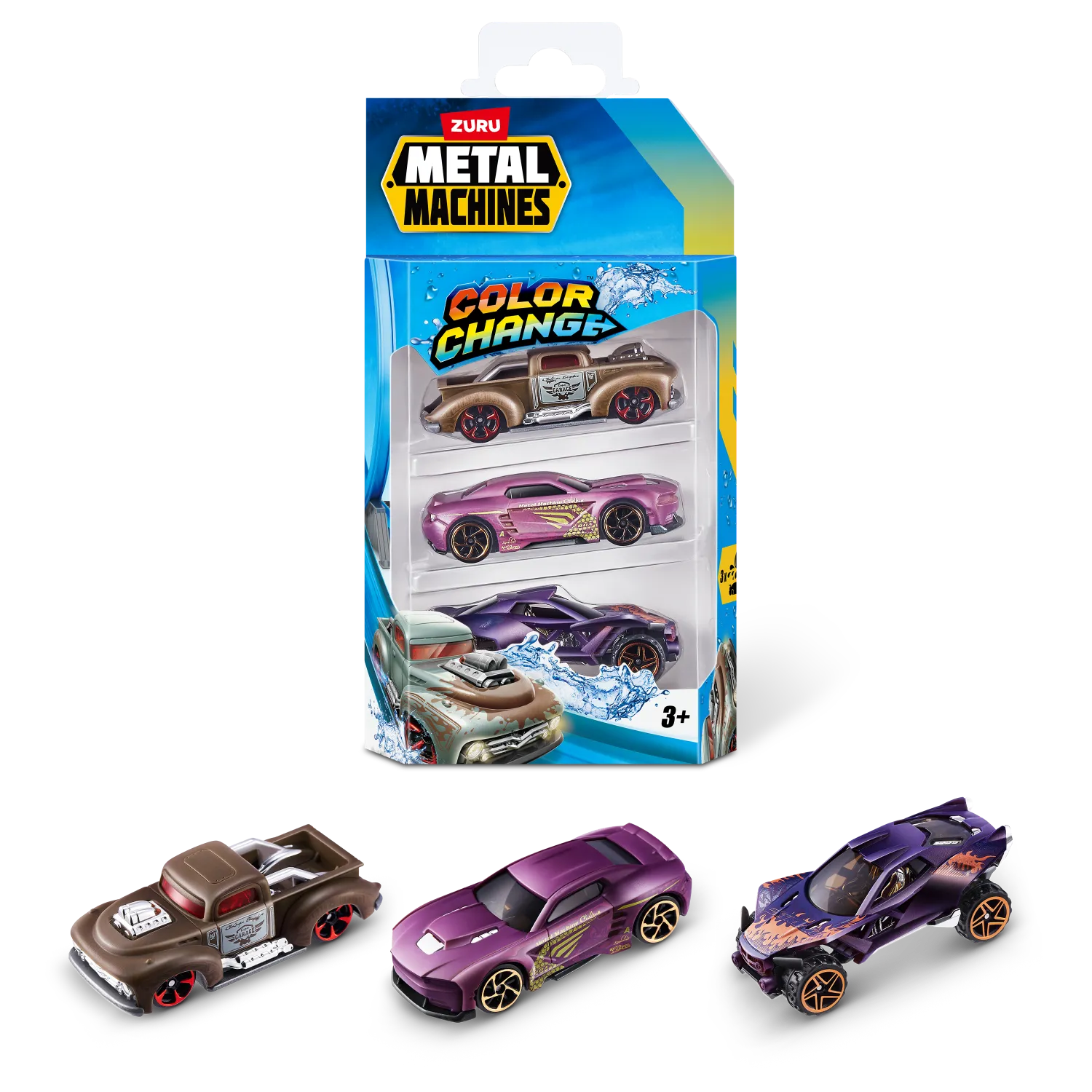 Disfrutá 2 épicos autos en uno con los nuevos autos de Metal Machine que cambian de color de ZURU. Simplemente sumerge el auto en agua caliente y mira cómo se transforma en un escurridizo y nuevo estilo. Luego sumérgelo en agua fría y volverá a su diseño original. ¡Deja que estos autos de metal fundido pierdan y vuelvan a la pista con un invencible cambio de color con los Metal Machines Color Change Cars!