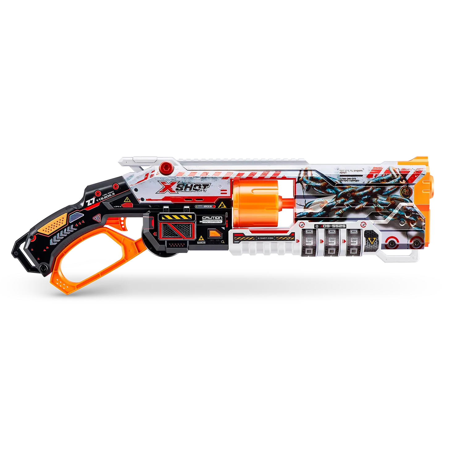 Cada pistola XSHOT Skins Lock Blaster viene con un código QR para que descubras tu combinación única de bloqueo. ¡Desbloquea tu pistola y comienza con la diversión! Cuando haya terminado la batalla, bloquea tu pistola para que nadie más pueda usarla. Elige diferente, elige la pistola XSHOT Skins.