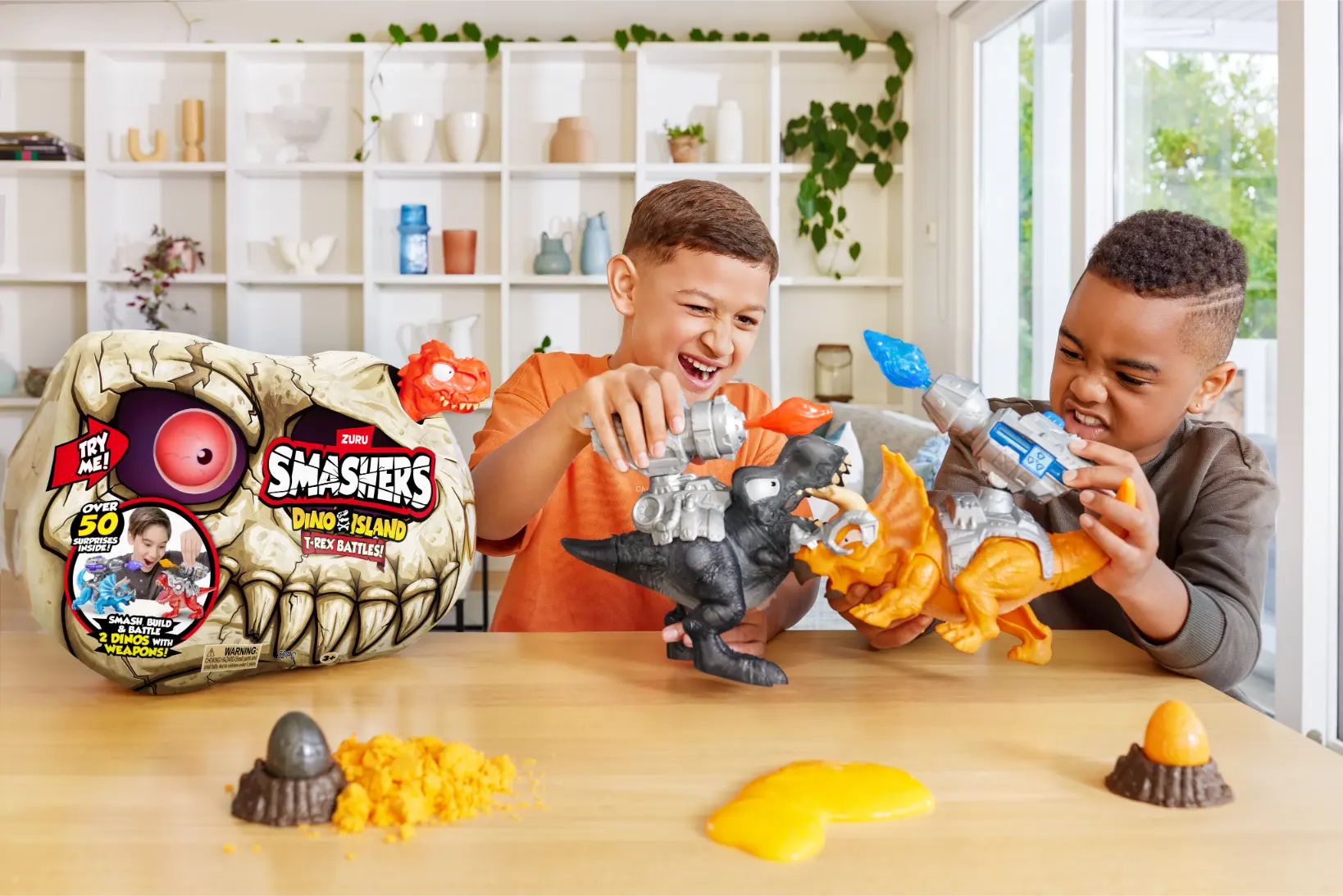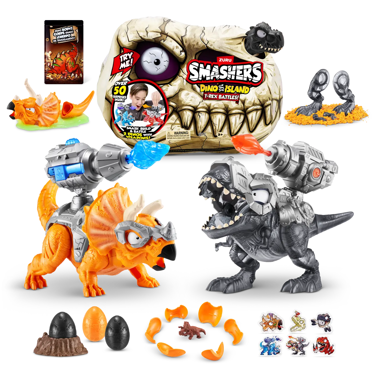 ¡Hay más de 50 sorpresas para romper, construir y batallar con Smashers Dino Island T-Rex Battles!