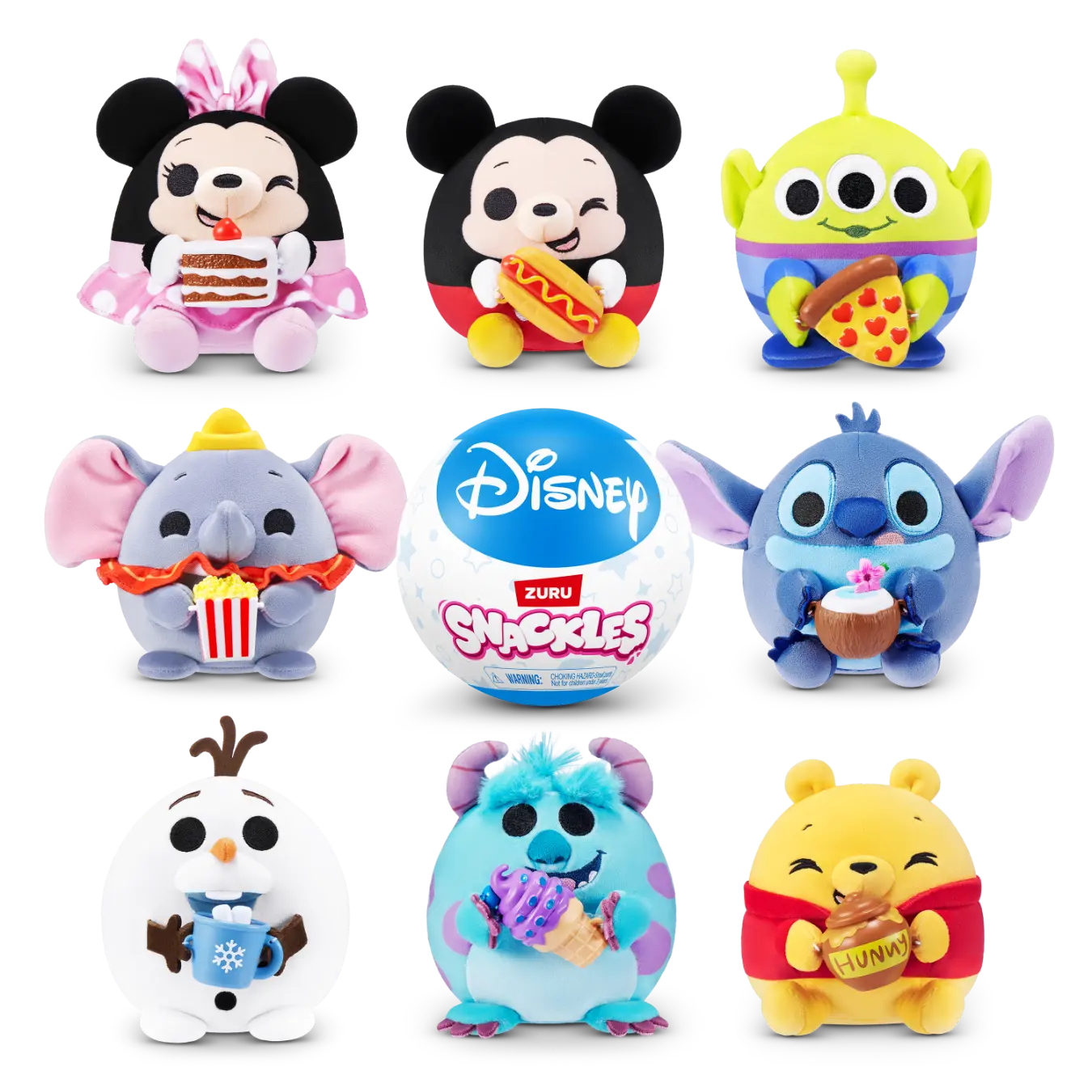 Llevá la magia de Disney a tu colección de abrazos con los peluches Disney Snackles, ultra suaves y apretables. Estos peluches de 12 cm combinan el encanto clásico de Disney con el estilo inconfundible de Snackles.