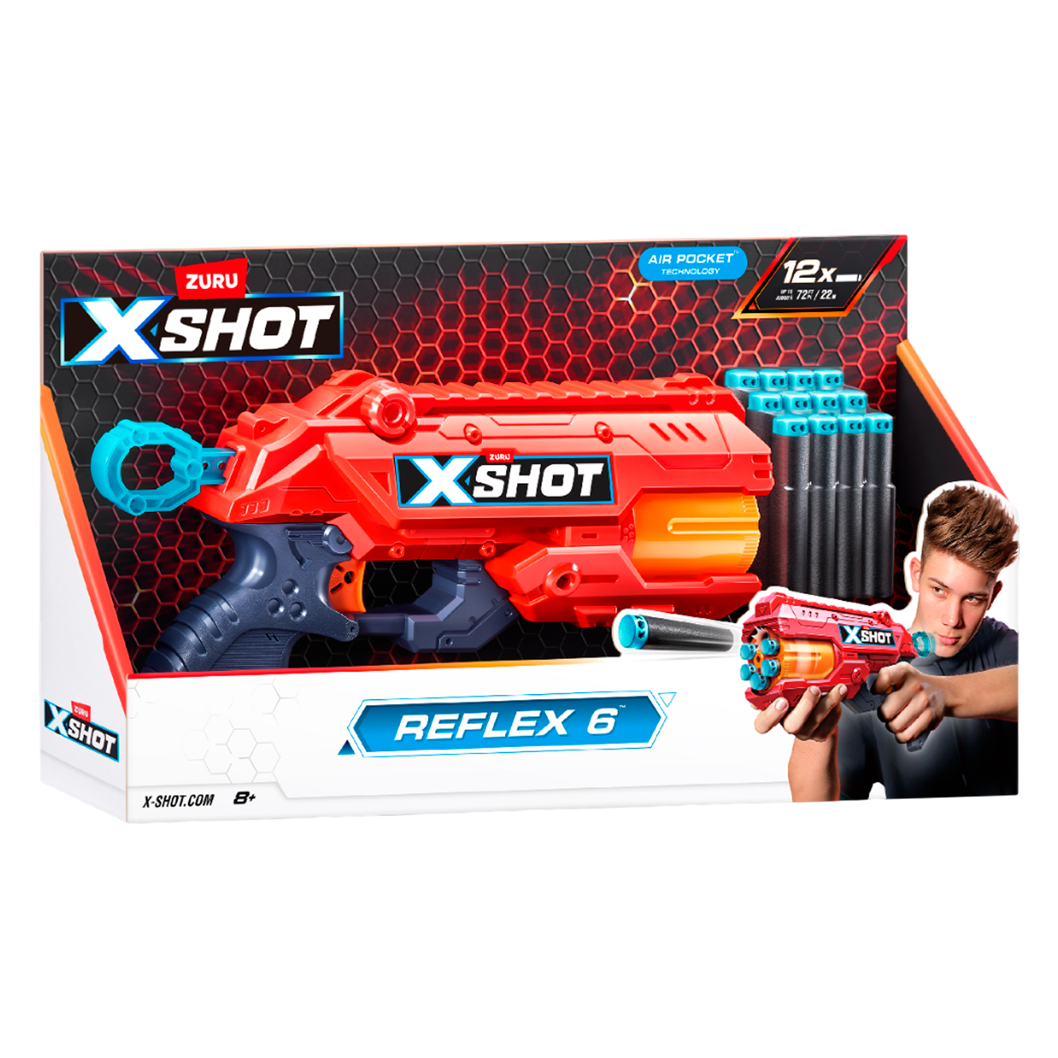 Embosca a la competencia con el disparo rápido de 6 dardos en menos de 30 segundos, utilizando el cañón giratorio de la Reflex 6. Prepara, bloquea y carga antes de disparar tus dardos a más de 27 metros de distancia ¡Mejora tu juego y acaba la batalla antes incluso de que empiecen tus oponentes!