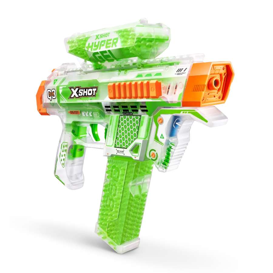 Redefine la emoción y la potencia con el XSHOT Hyper Gel Gatling Blaster. Este blaster motorizado lanza bolitas de gel a una impresionante velocidad de 220 km/h, lo que garantiza que tus oponentes sientan cada disparo. Prepárate para batallas épicas sin precedentes con este blaster de última generación que combina innovación y diversión en un llamativo paquete. Con el Hyper Gel Gatling y la impresionante cartuchera de 1.800 bolas de gelatina que brillan en la oscuridad, estarás imponente desde el amanecer hasta el anochecer… ¡y más allá!