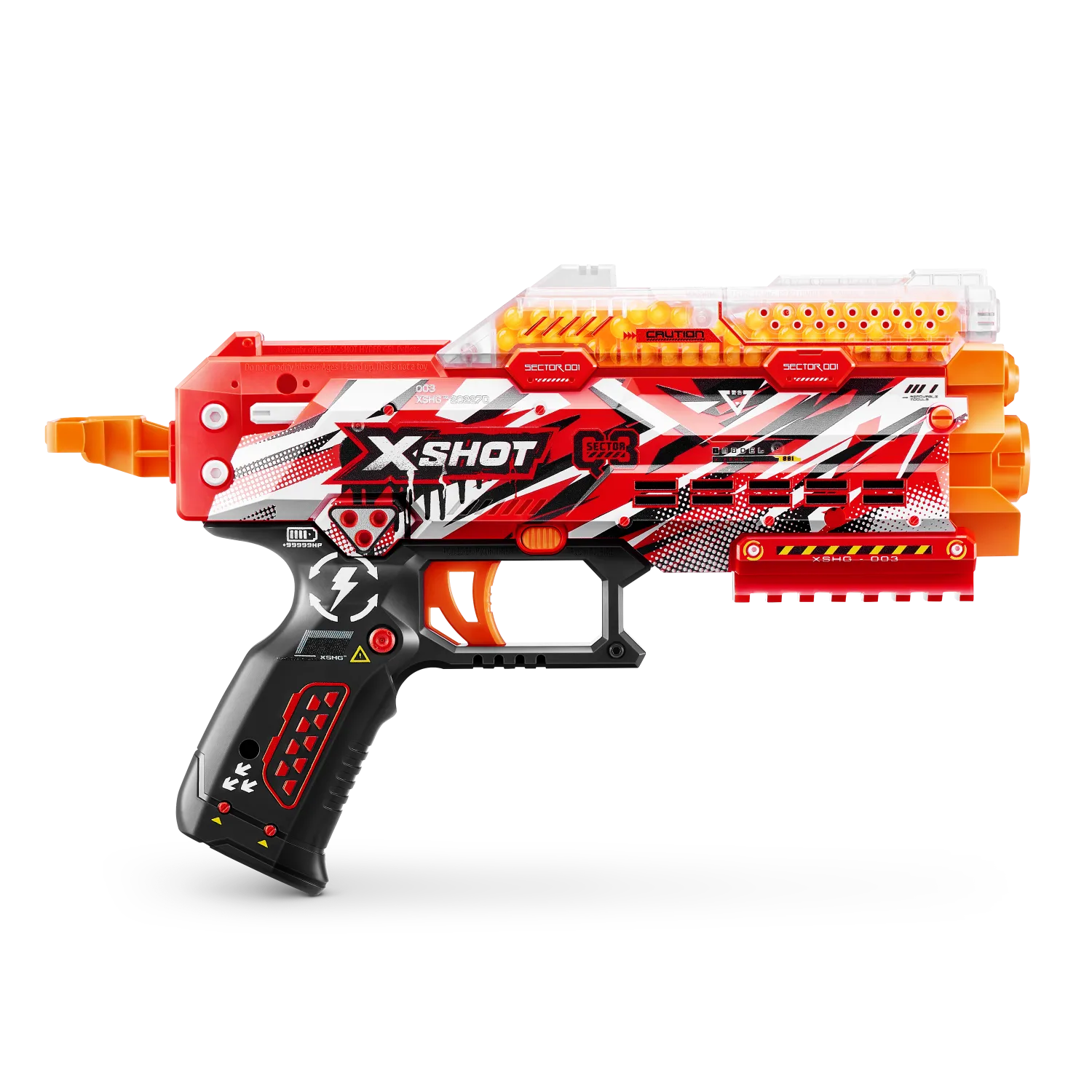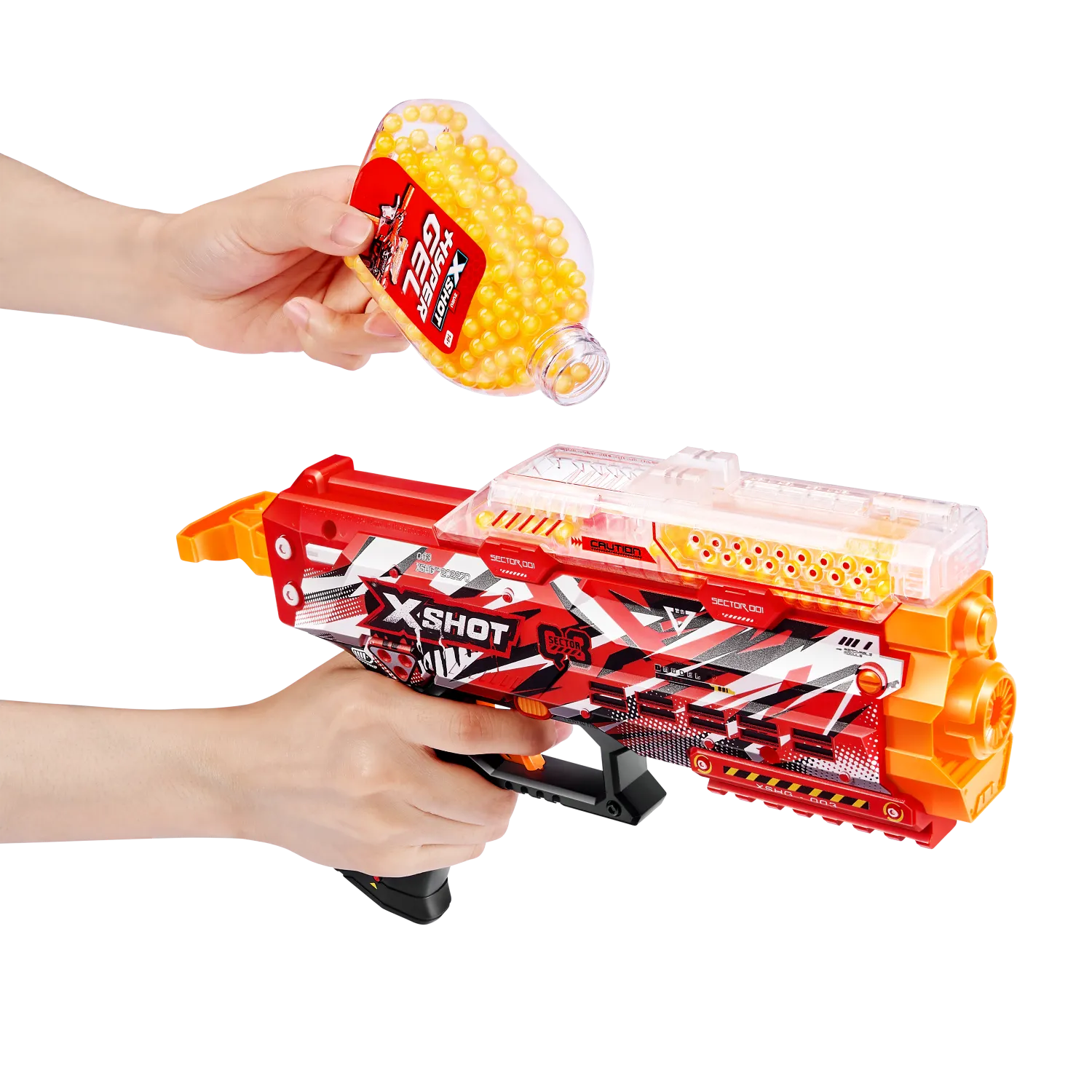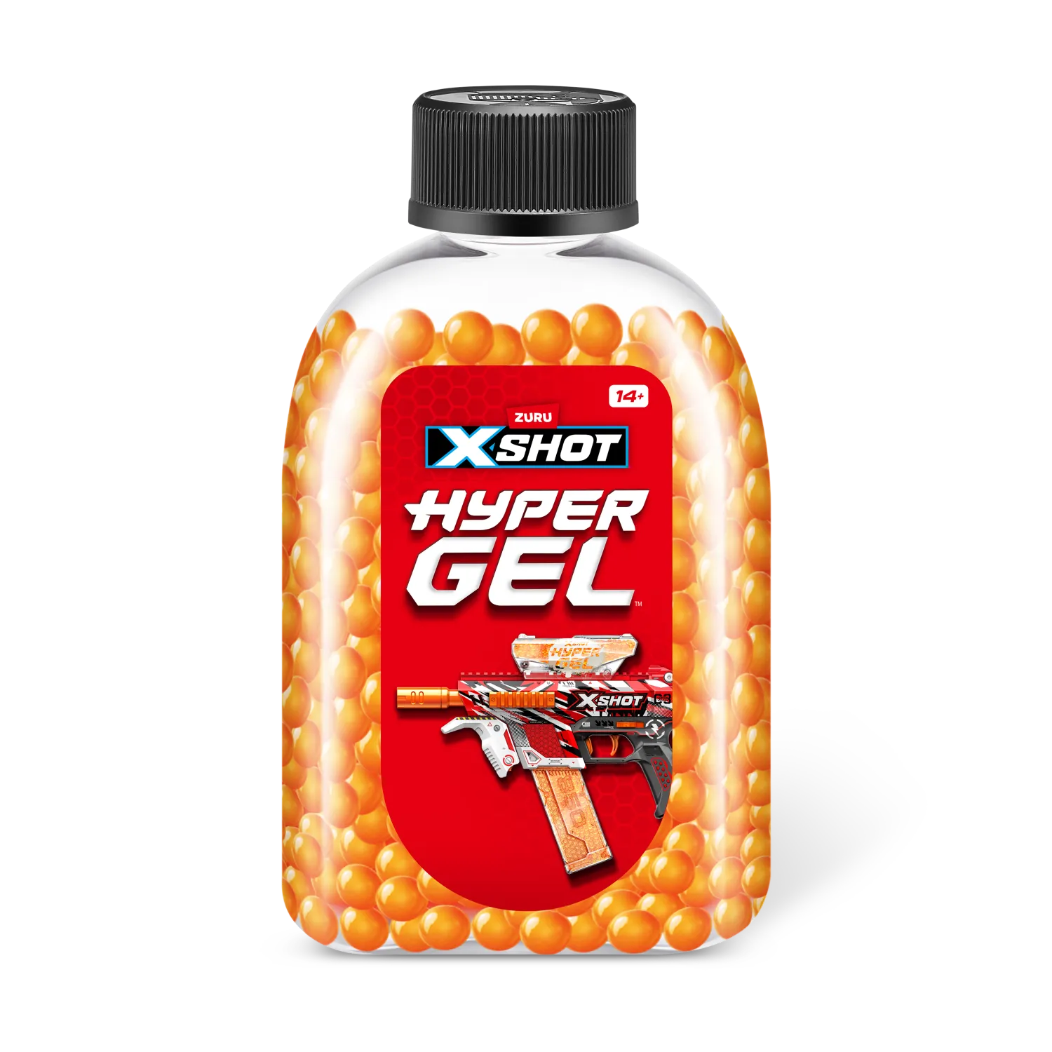 El XSHOT Hyper Gel Stinger puede lanzar bolitas de Hyper Gel a 45 metros por segundo. El Stinger tiene una capacidad de 250 bolitas de gel. Con 3000 bolitas de Hyper Gel y gafas protectoras, hidrata las bolitas de gel en agua y estarás listo para empezar el torneo definitivo con Gel Blaster.