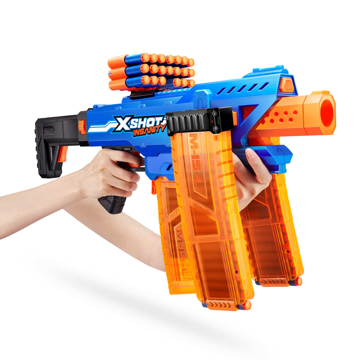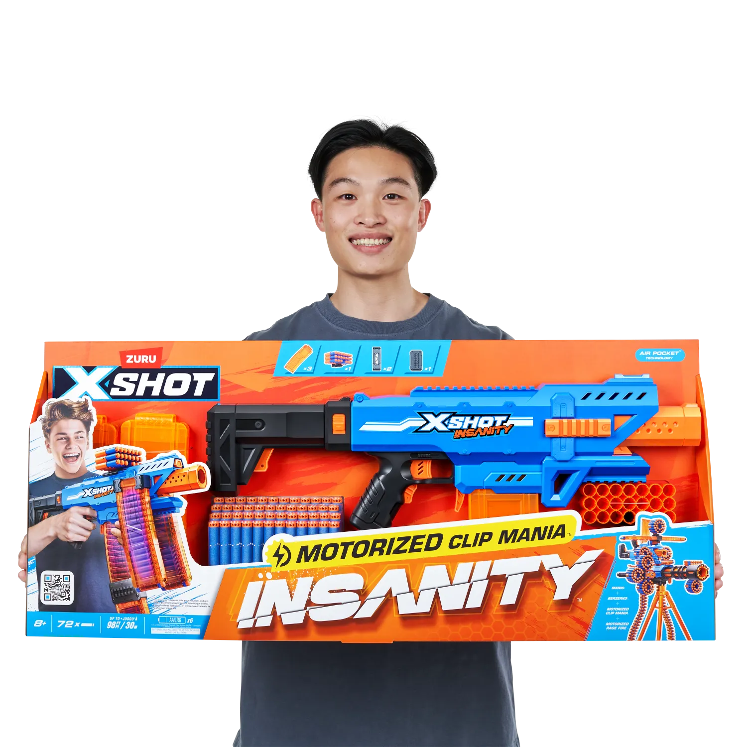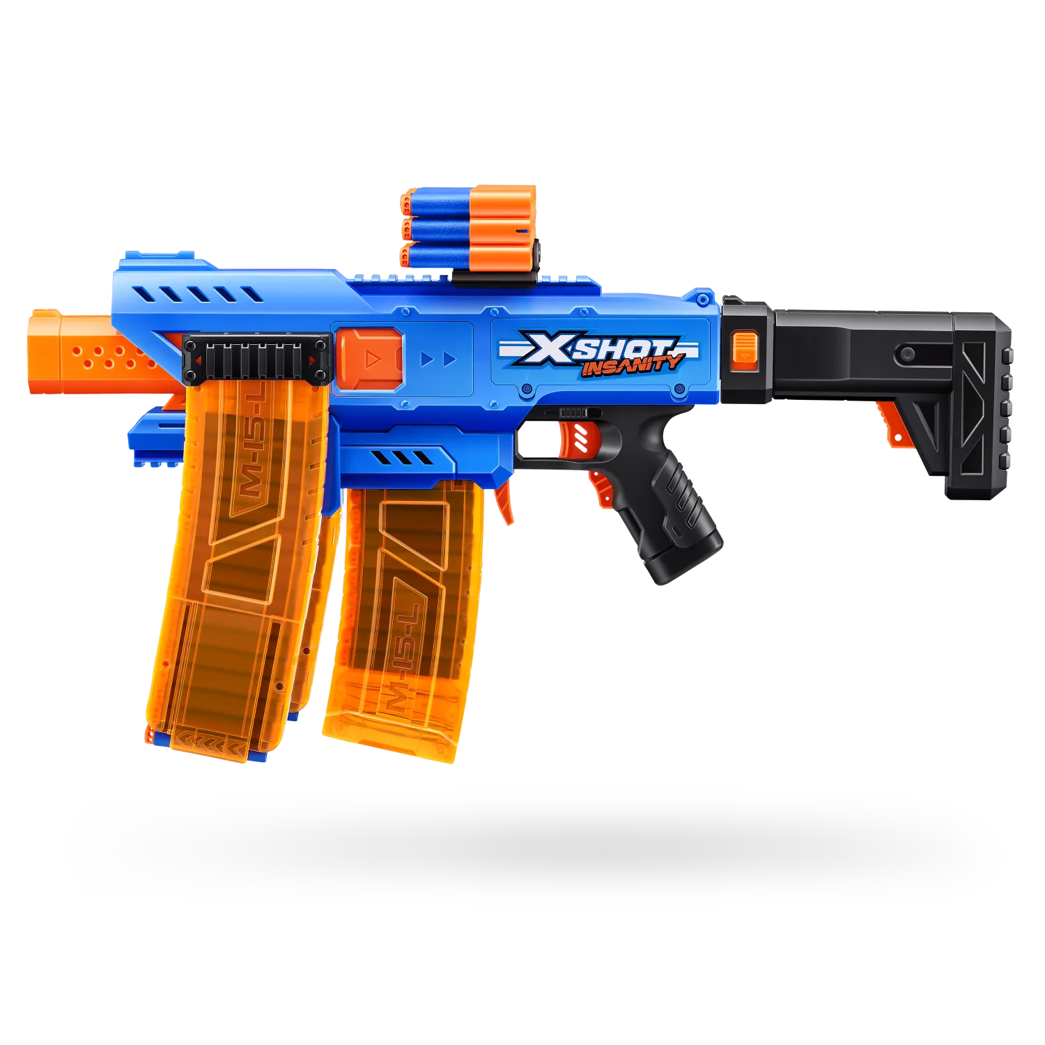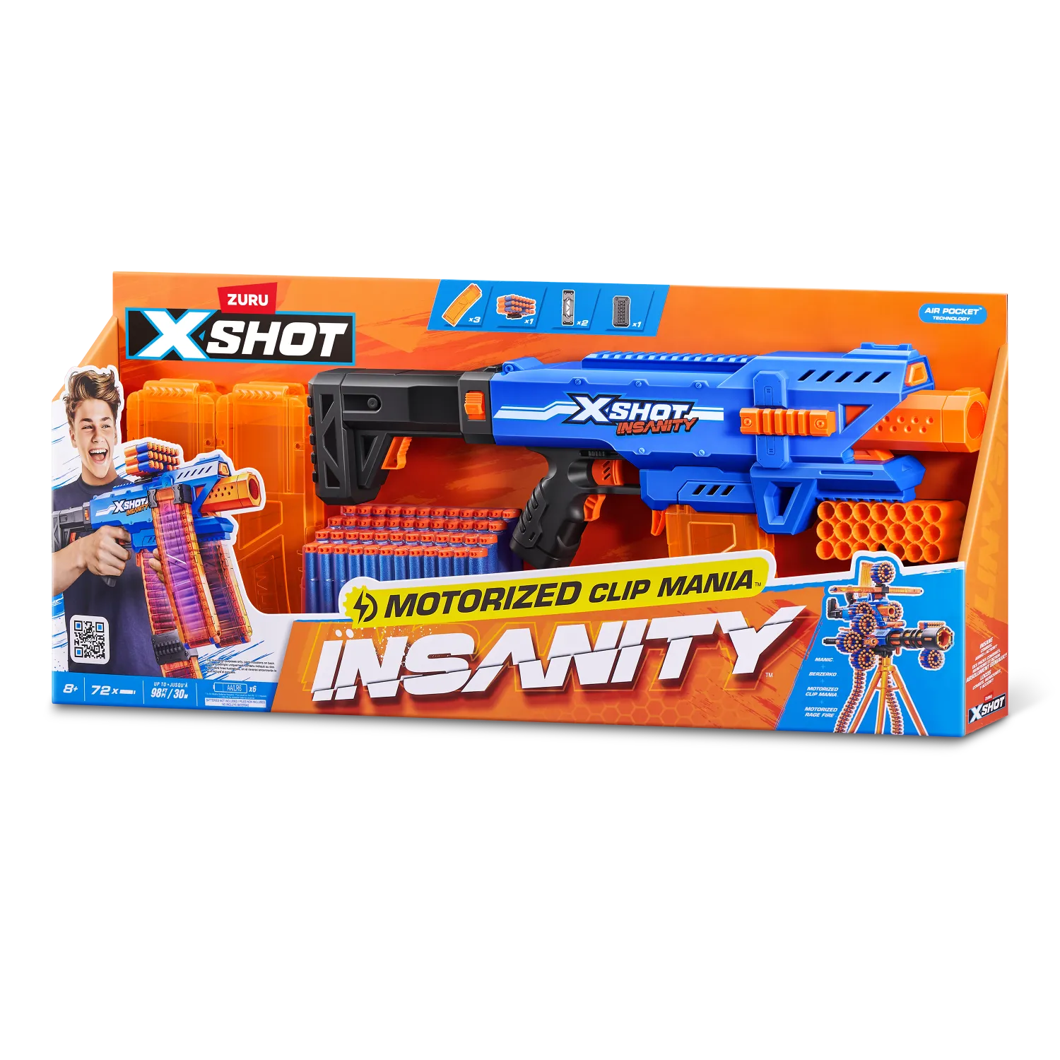 ¡Combos, munición y acción demencial con XSHOT Insanity! ¡SUBE DE NIVEL en tus contiendas de lanzamientos con XSHOT Insanity Motorized Clip Mania! Esta blaster incluye 3 cargadores clip y extensores de clips para no tener que recargar nunca. Totalmente motorizada para contar con más potencia de lanzamiento todavía: ¡dispara a hasta 30 metros de distancia en segundos! ¡Puedes hacer combinaciones épicas con cualquier otra blaster XSHOT Insanity!