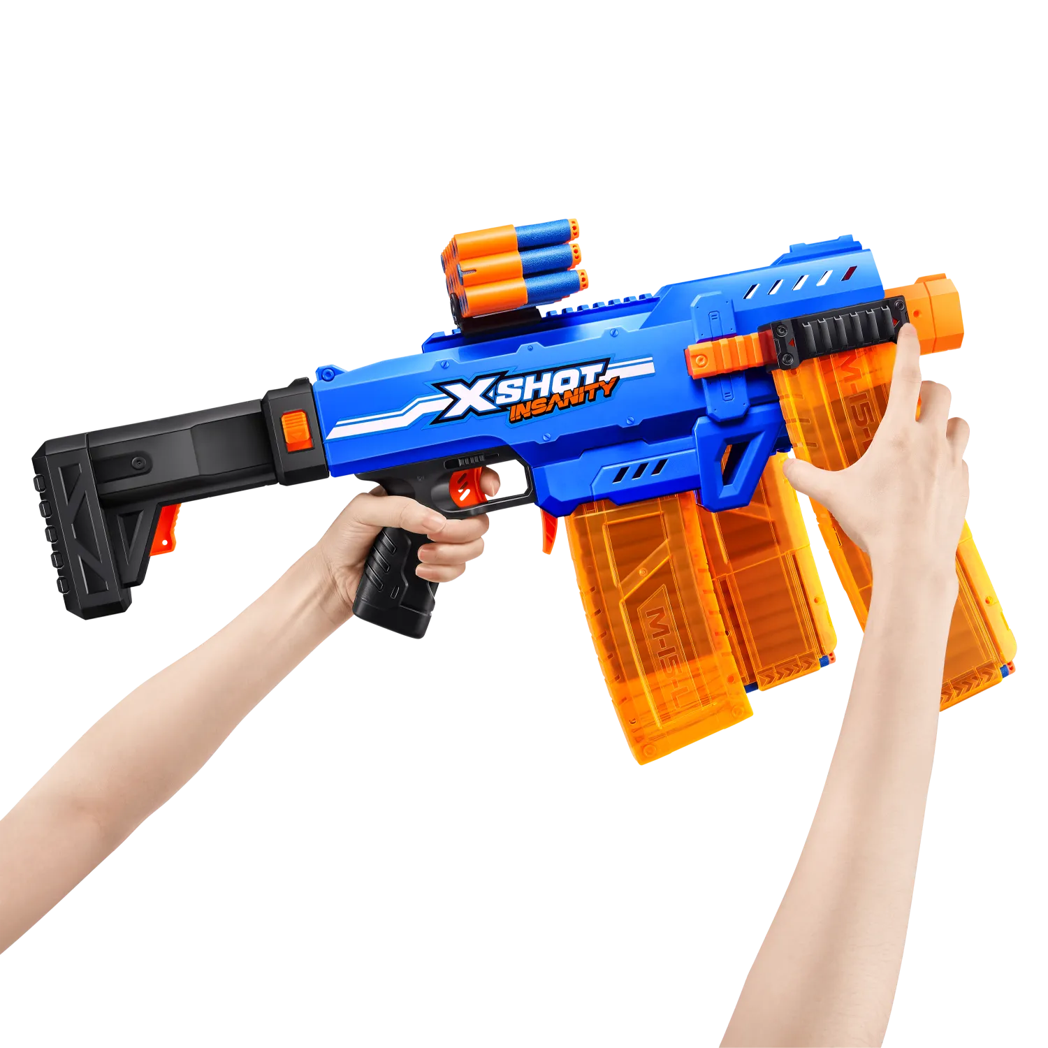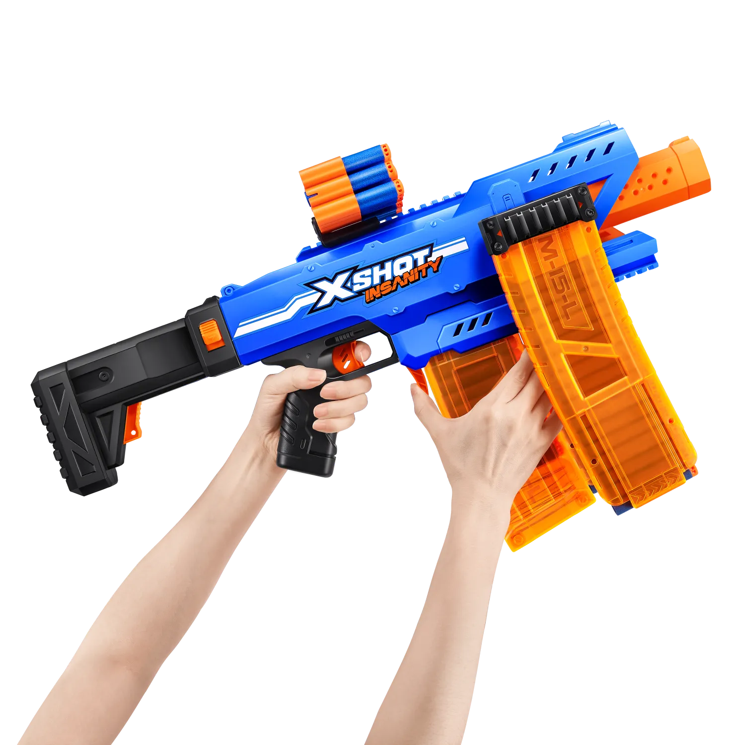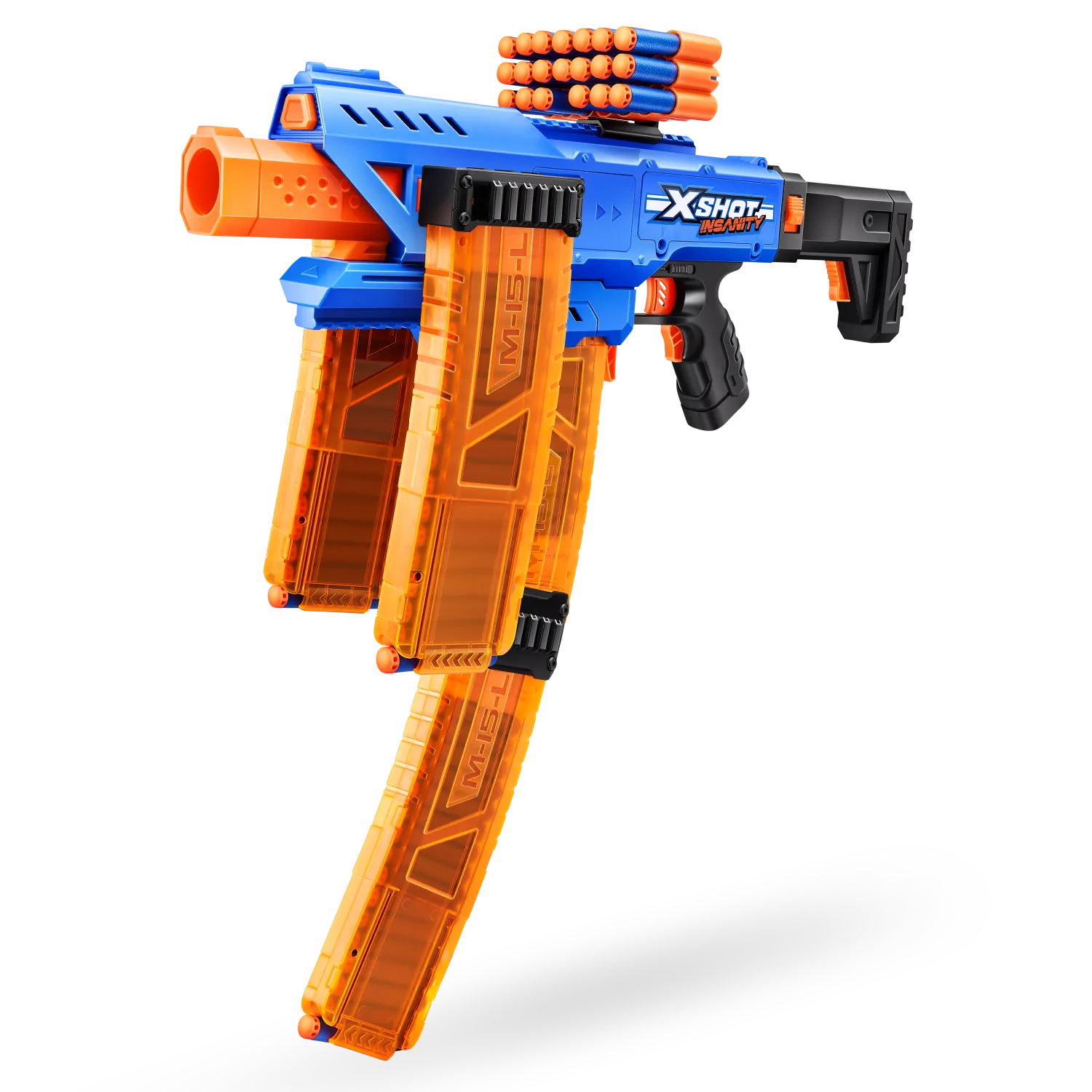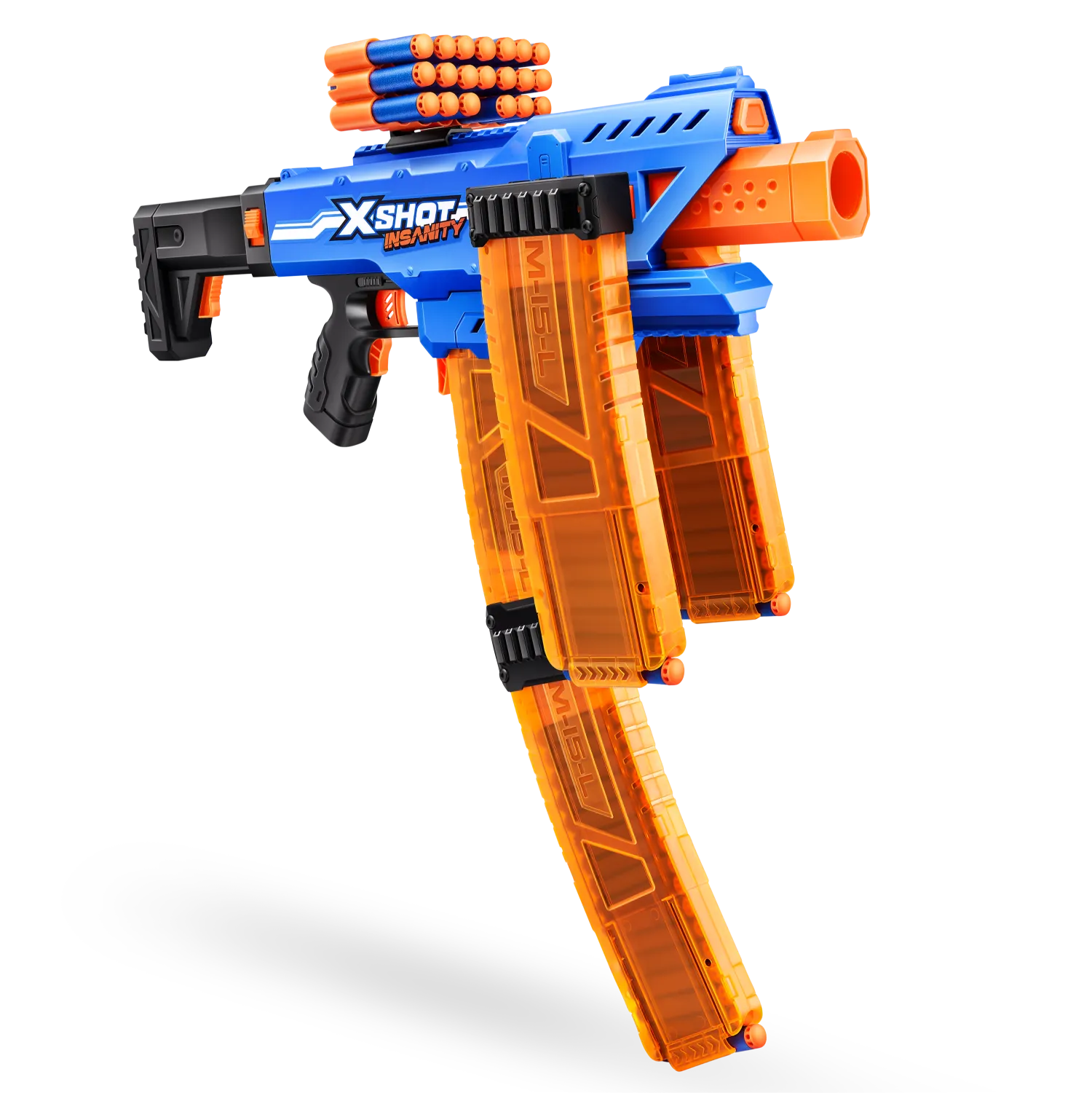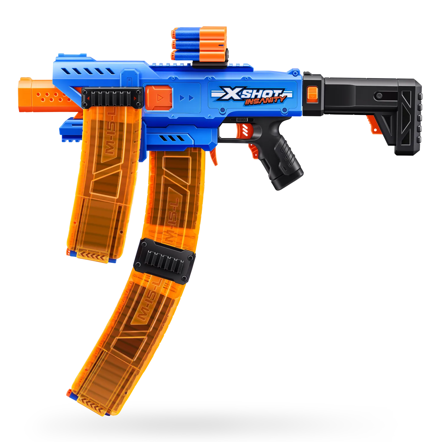 ¡Combos, munición y acción demencial con XSHOT Insanity! ¡SUBE DE NIVEL en tus contiendas de lanzamientos con XSHOT Insanity Motorized Clip Mania! Esta blaster incluye 3 cargadores clip y extensores de clips para no tener que recargar nunca. Totalmente motorizada para contar con más potencia de lanzamiento todavía: ¡dispara a hasta 30 metros de distancia en segundos! ¡Puedes hacer combinaciones épicas con cualquier otra blaster XSHOT Insanity!