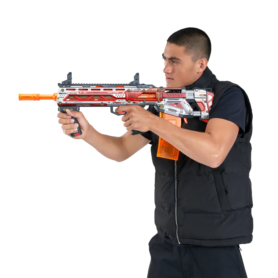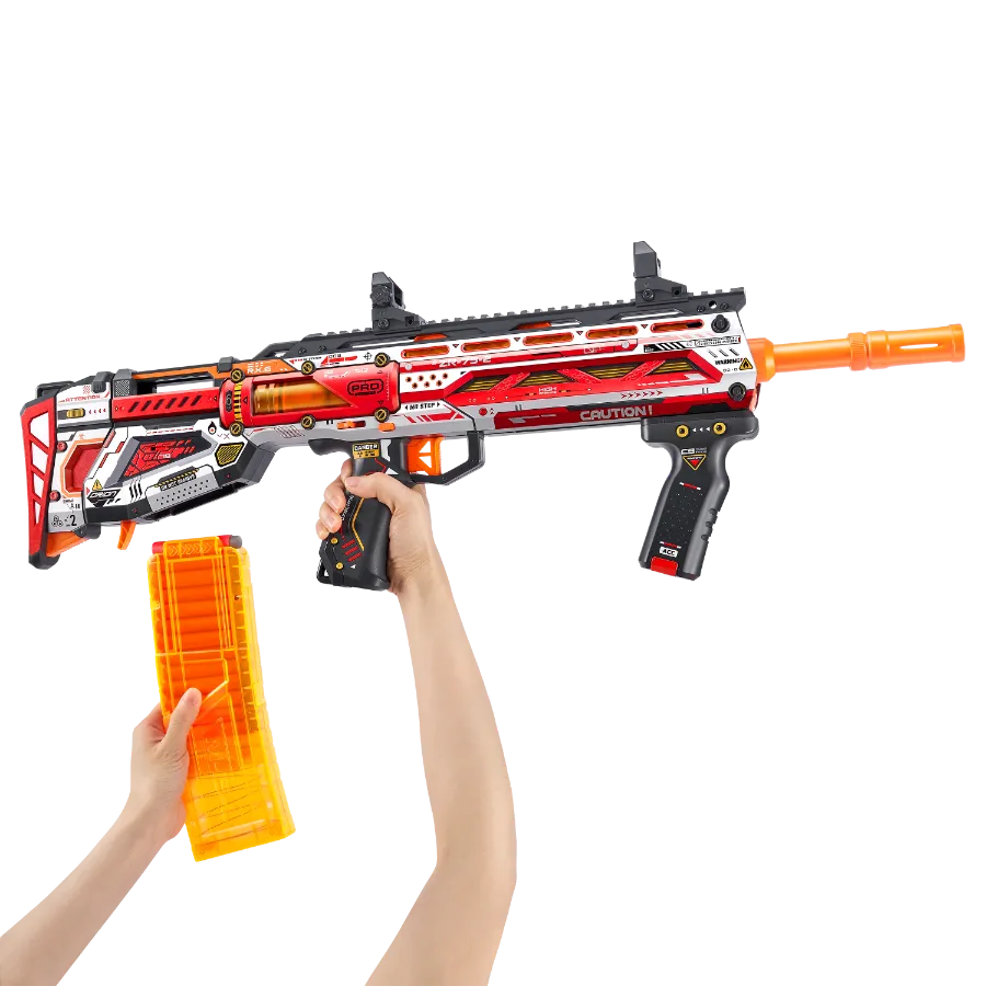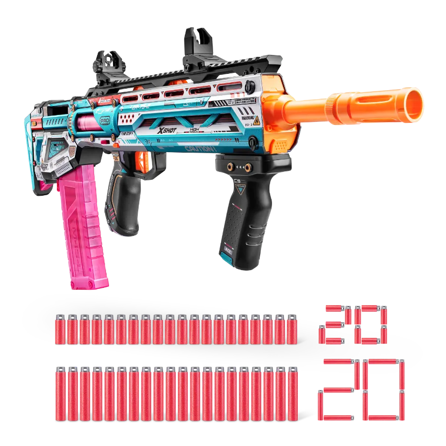 Conviértete en un profesional con la pistola XSHOT Skins Pro Series Longshot. La pistola Longshot ha sido diseñada para lograr precisión y distancia en cada disparo. Equipada con 2 cargadores para dardos de liberación rápida, la pistola Longshot es compatible con dardos de longitud media y completa, ambos con tecnología air pocket para un recorrido más lejano, más rápido y más estable. ¡Usa la función slam fire para disparar con el cargador de 20 dardos en segundos y derribar blancos hasta una distancia de 43 metros/140 pies! Sube de nivel con las pistolas XSHOT Pro Series.