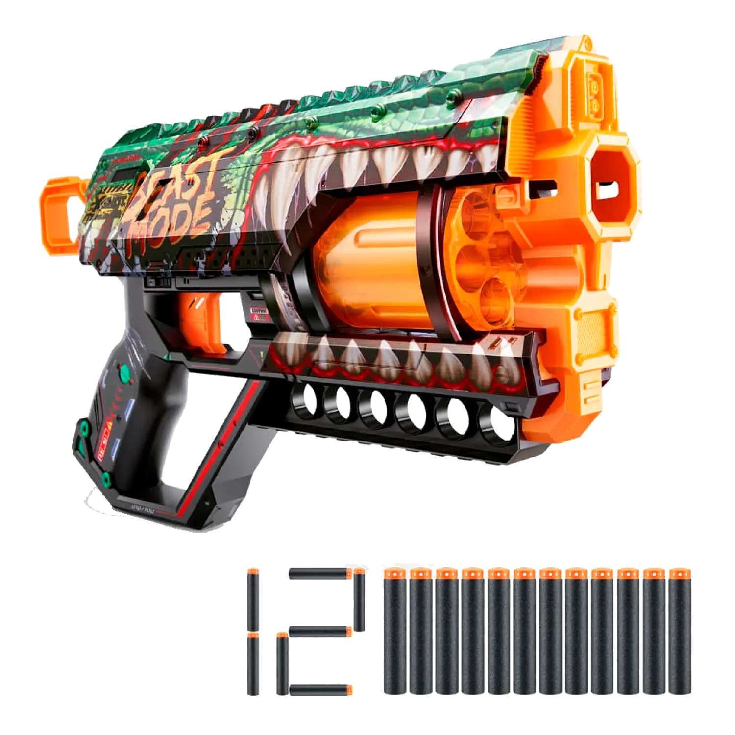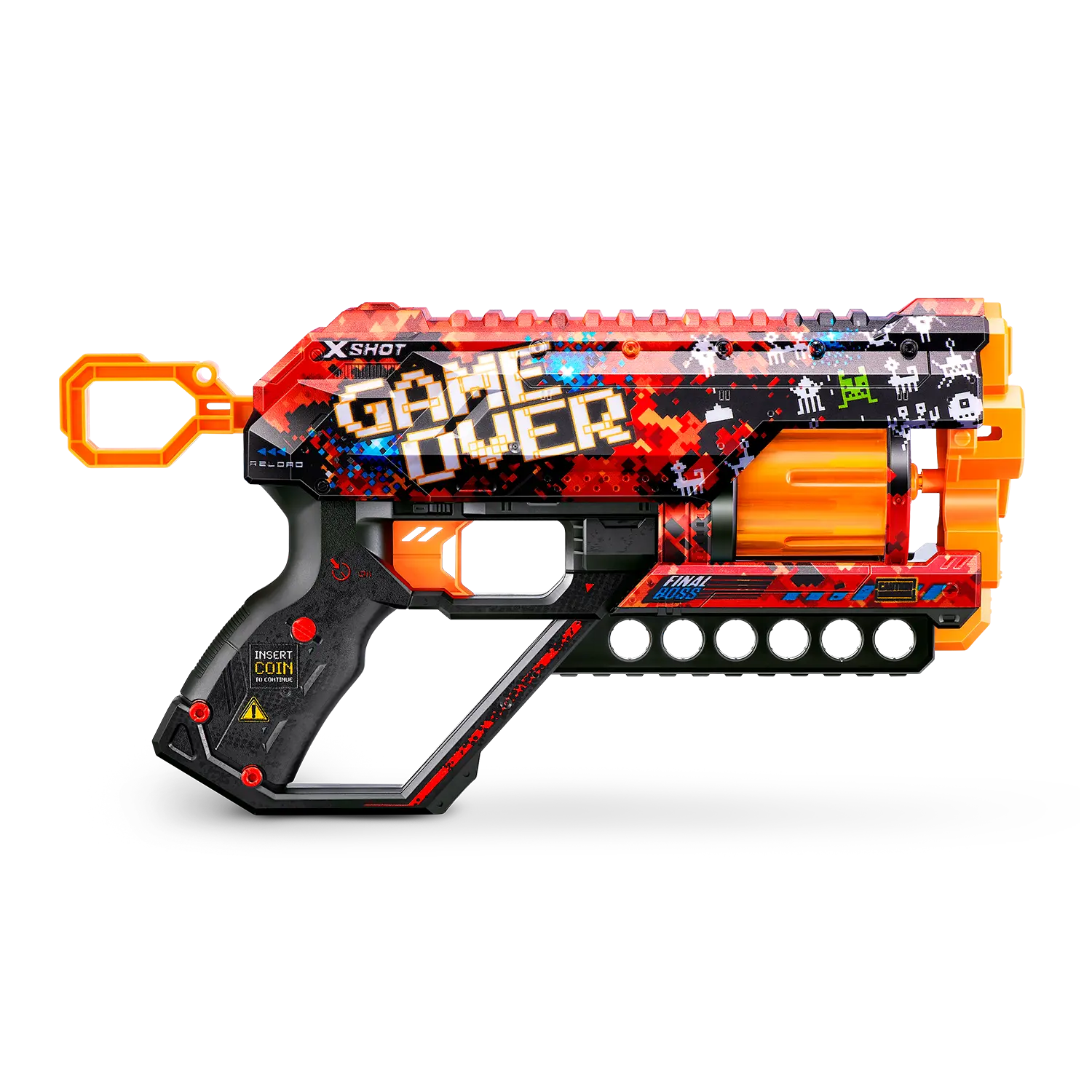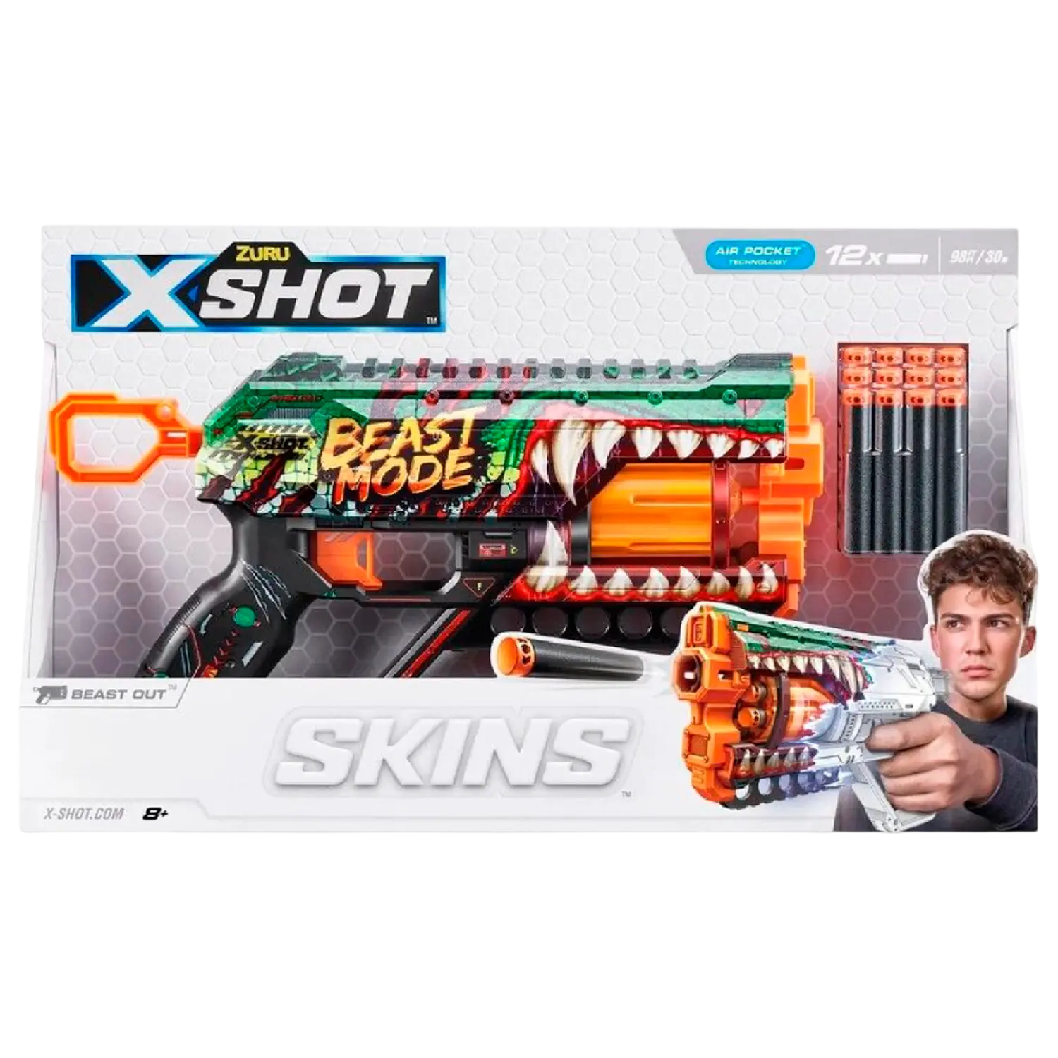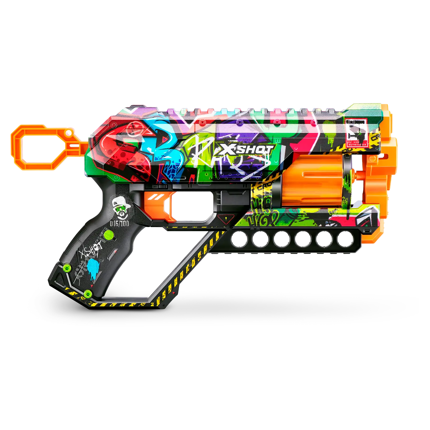 Las skins XSHOT hacen que la experiencia de juego de cambiar la skin de tu pistola sea real. Elige tu skin y únete a la batalla. La pistola XSHOT Skins Griefer tiene suficiente potencia para derribar blancos a una distancia de 27 metros/ 90 pies. Esta pistola derrota a todos en menos de 30 segundos con su cañón giratorio y su disparo rápido de 6 dardos. La pistola XSHOT Skins Griefer viene con 6 skins exclusivas para seleccionar y coleccionar y con 12 dardos de goma con tecnología air pocket. Elige diferente, elige la pistola XSHOT Skins.